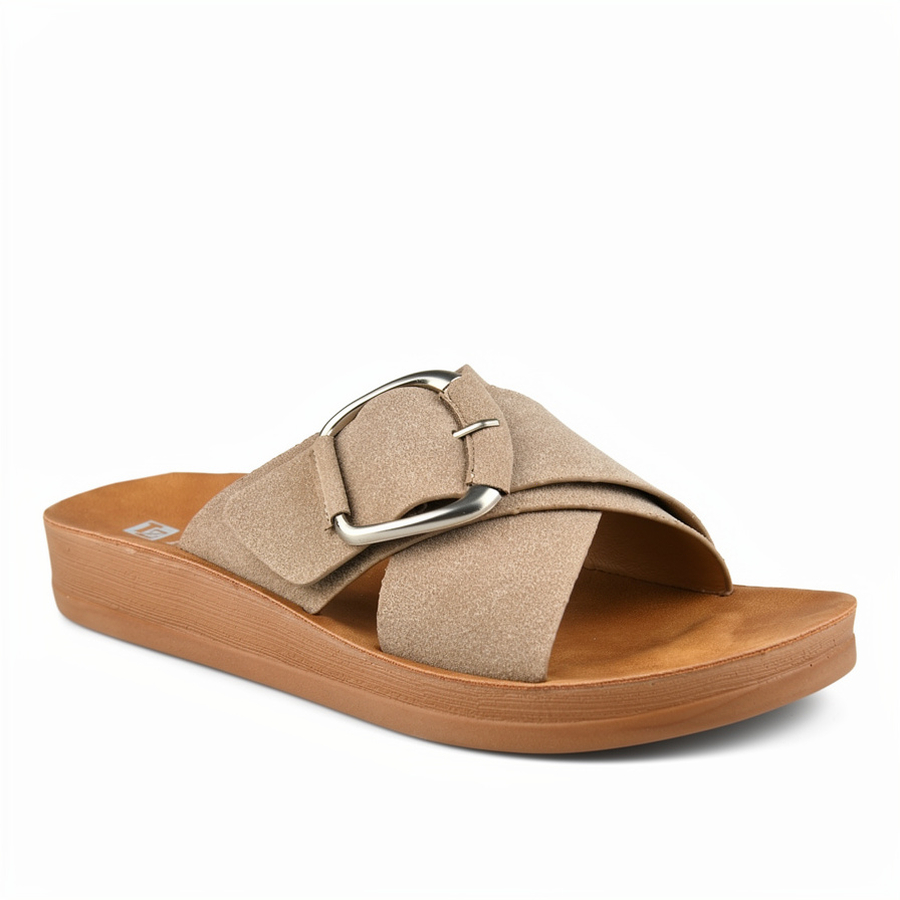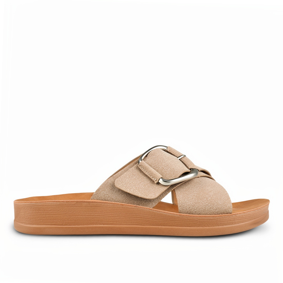 дамски чехли еко кожа светло кафяви