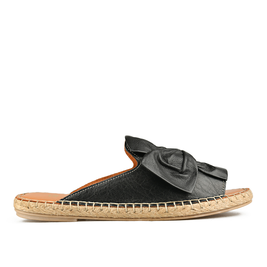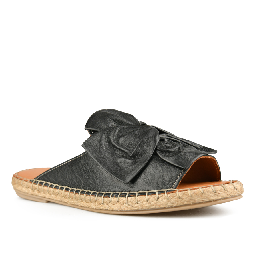 дамски чехли естествена кожа черни 0149435