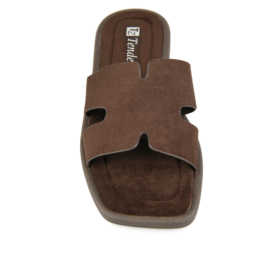 дамски чехли текстил тъмно кафяви
