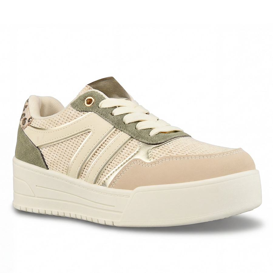дамски маратонки еко кожа/текстил бежови