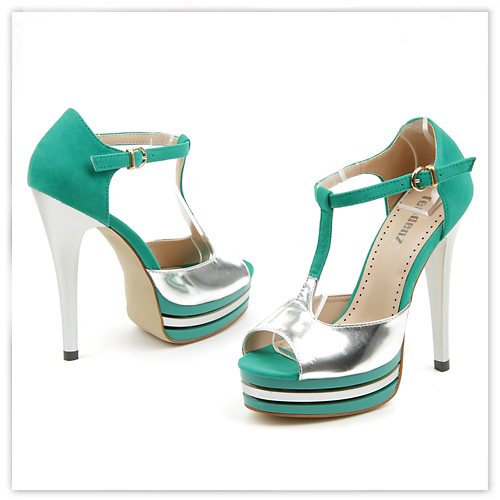 дамски обувки еко кожа сребърно/зелени