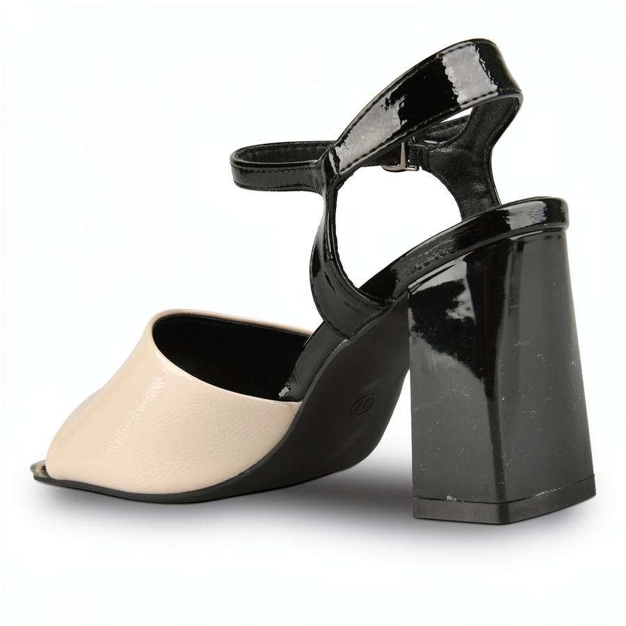дамски сандали еко кожа черно/бежови