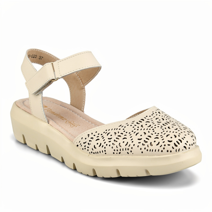 дамски сандали естествена кожа бежови