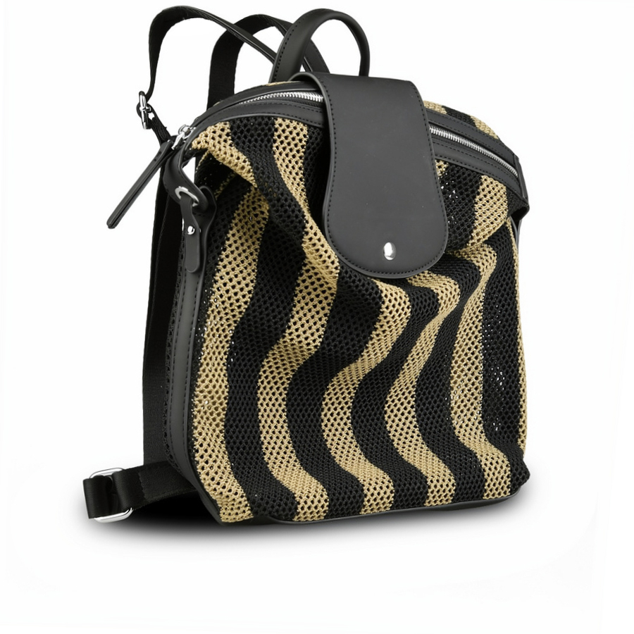 дамска раница еко кожа черно/зелена