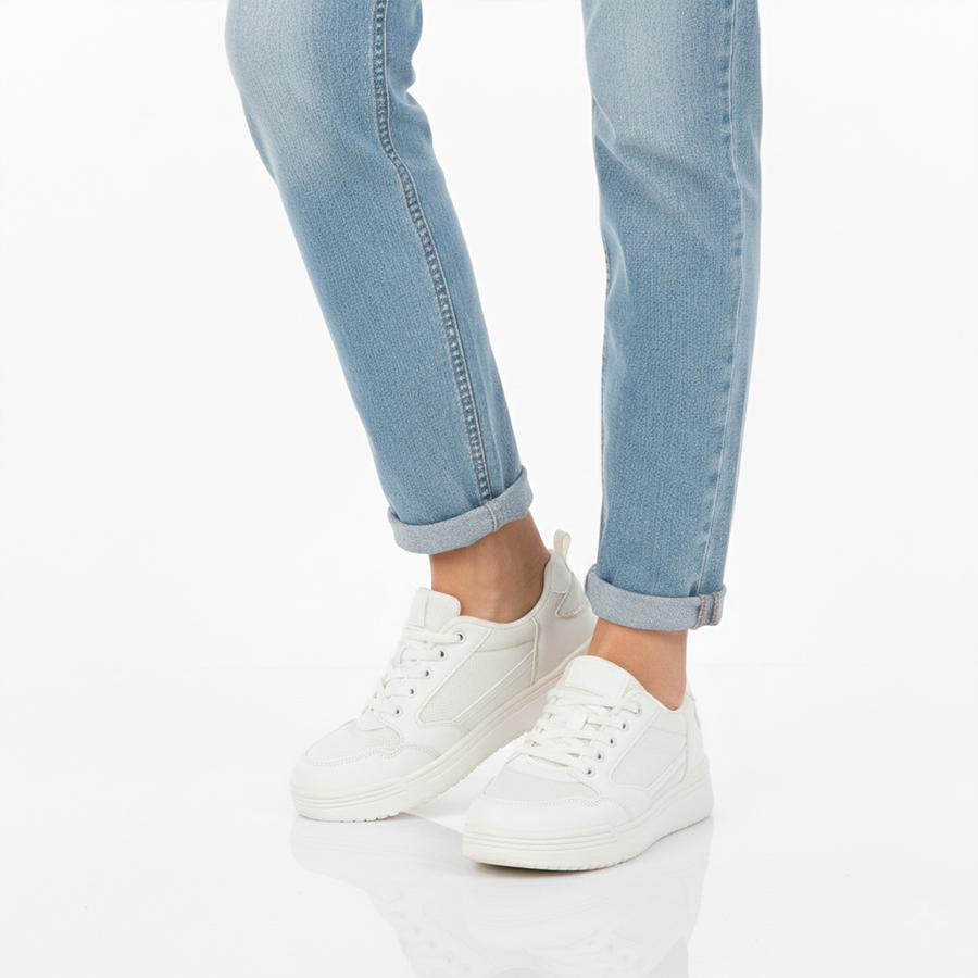 дамски маратонки еко кожа/текстил бели