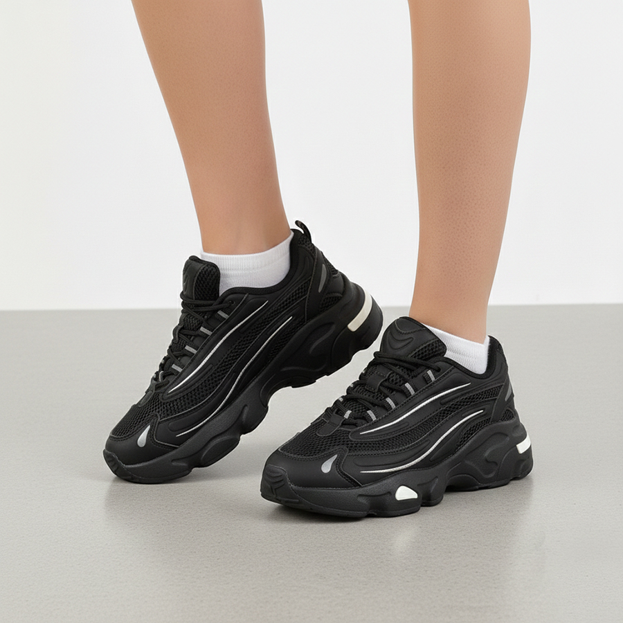 дамски маратонки еко кожа/текстил черни