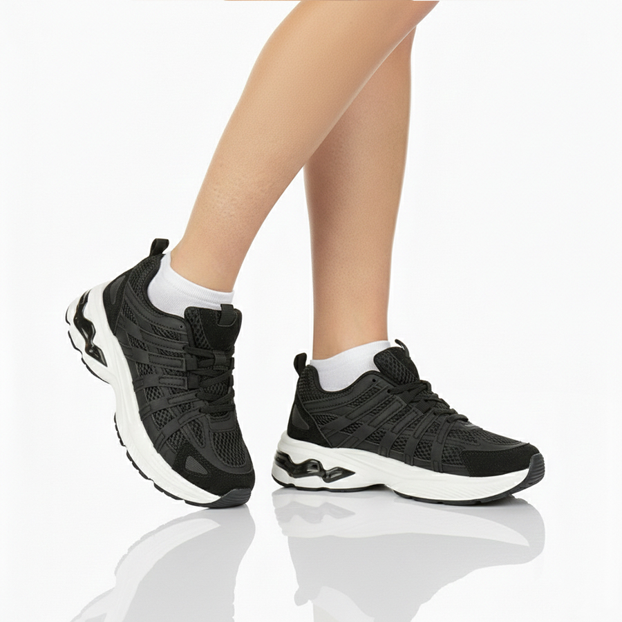 дамски маратонки еко кожа/текстил черни