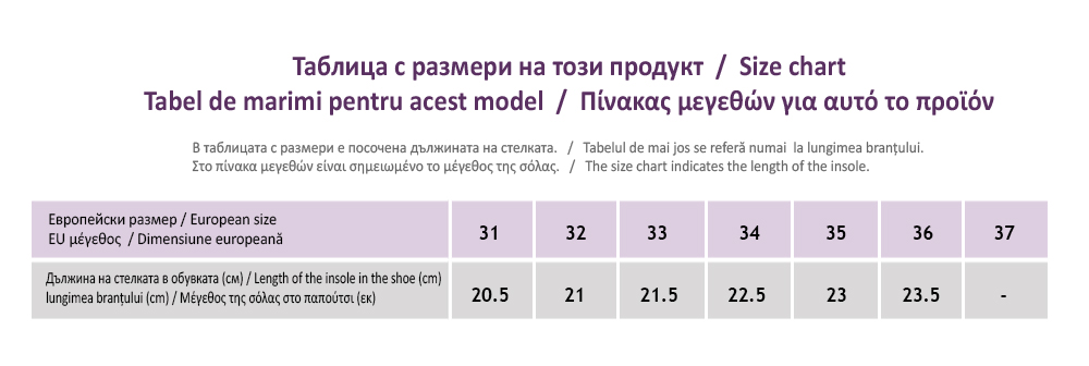 Tаблица с размери